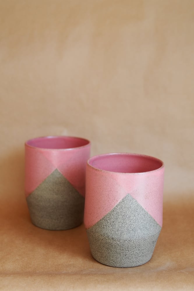 Māwhero is pink in te reo Māori, this glaze is a stain glaze, a true dark pink with a wonderfully rich contrast agents the clay. The brutalist clay is a hard waring clay, that has a light feel and concrete look.