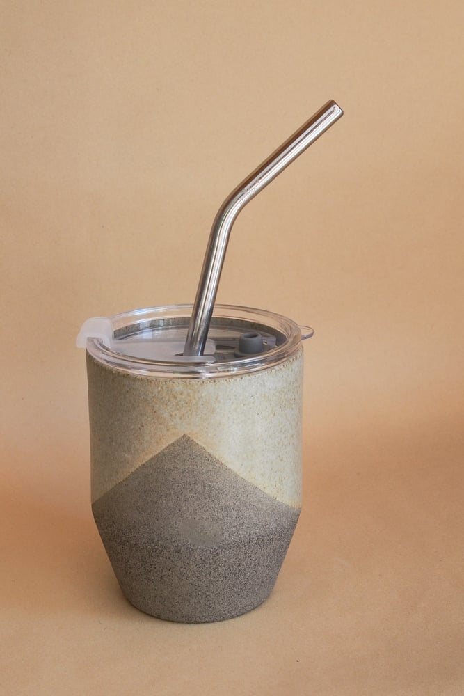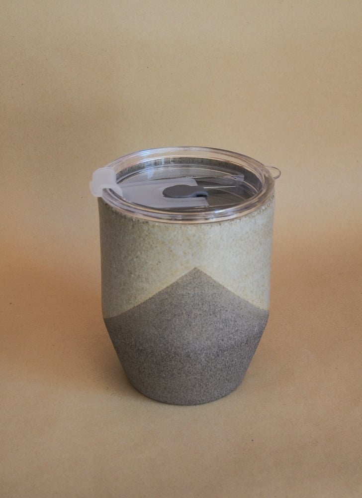 These tumblers, are thrown on the pottery wheel and hand glazed in Kirikiri, kirikiri is a matte sand glaze which shows of the natural elements of the clay..