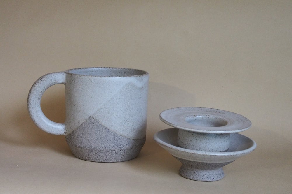 These are multipurpose little cuties, they work as a lid then when you lift them off, you can use them for your tea bag or tea strainer. They have a little angled footing that works as a mini petastal but also so you can hold onto it securely while lifting. These bowls also are great for jewellery or tiny sides, I'm thinking chilli flakes or Soy.