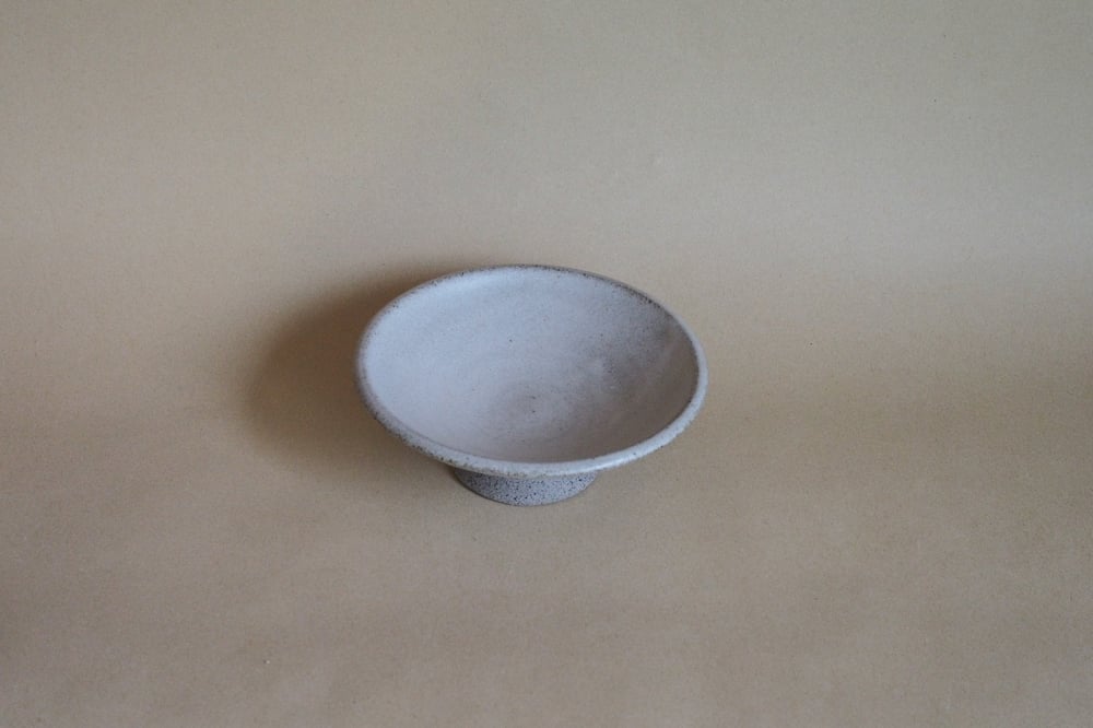 These are glazed in a straight sided glaze so that they look good over our mug. This bowl is glazed in Muka, a soft cream white with burnished edges.